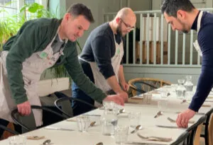 The day started nice and early for our chef team, Jo Pastry Chef and Simon Executive Chef travelled from Birmingham at 5am, they were joined in the kitchen by Dan Head Chef and Adam Sous Chef. Food donations are fundamental to the everyday operation of Refettorio Felix, our team started the day by collecting ingredients and prepping a menu for the day with the food available in the day.
