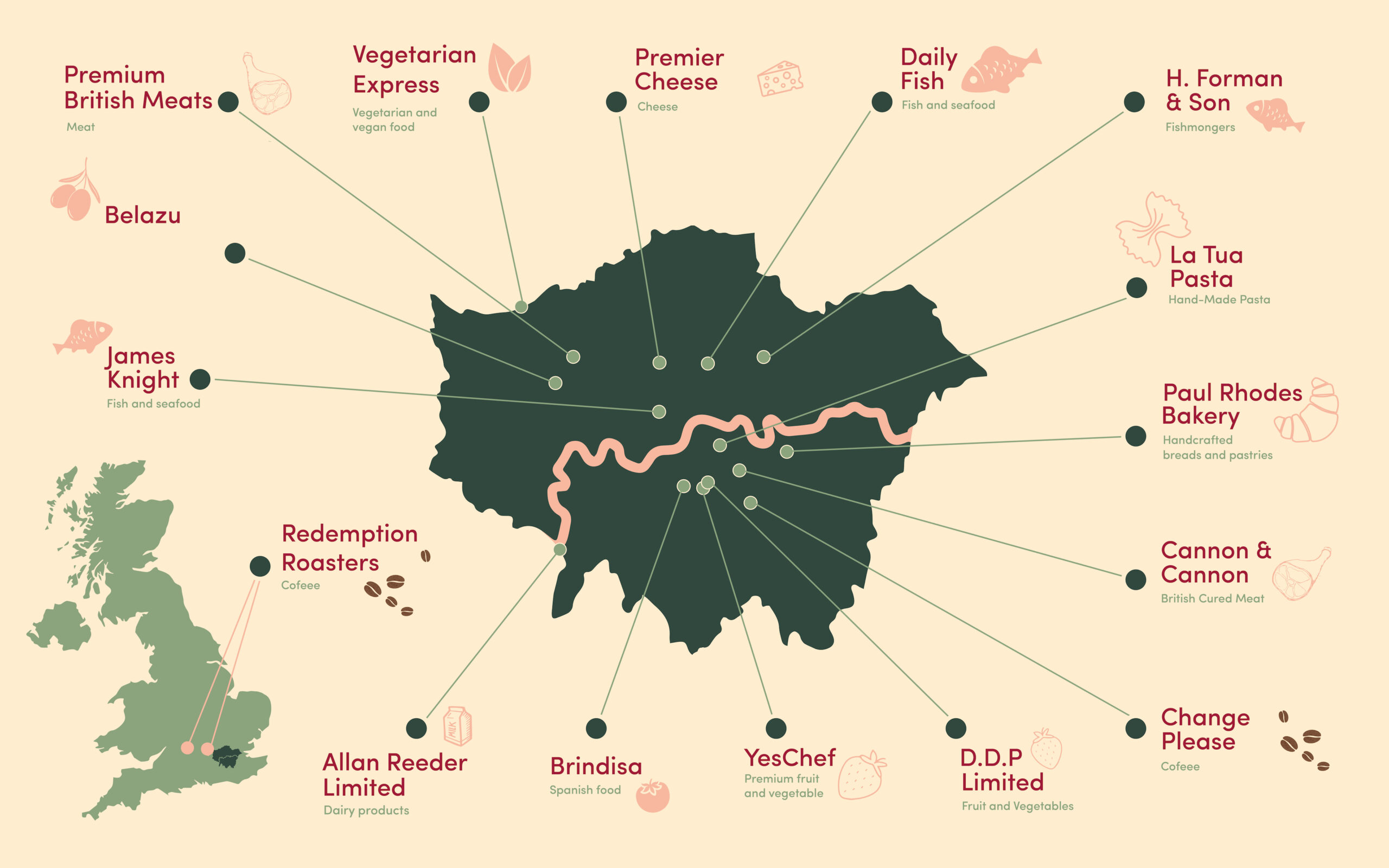 We produce over 95% of our menus from scratch, using a quality-led local supply chain from suppliers located within the M25 (London-based). We have mature relationships with our suppliers spanning over 15 years, receiving the best produce at a competitive price.